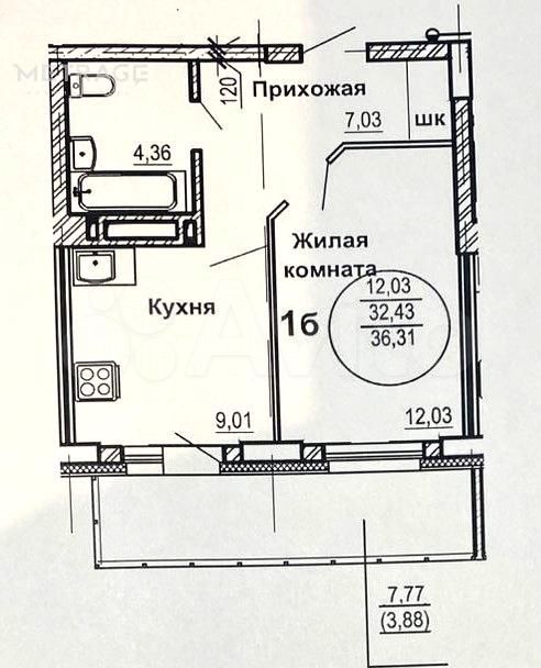- Общая площадь: 33 м2