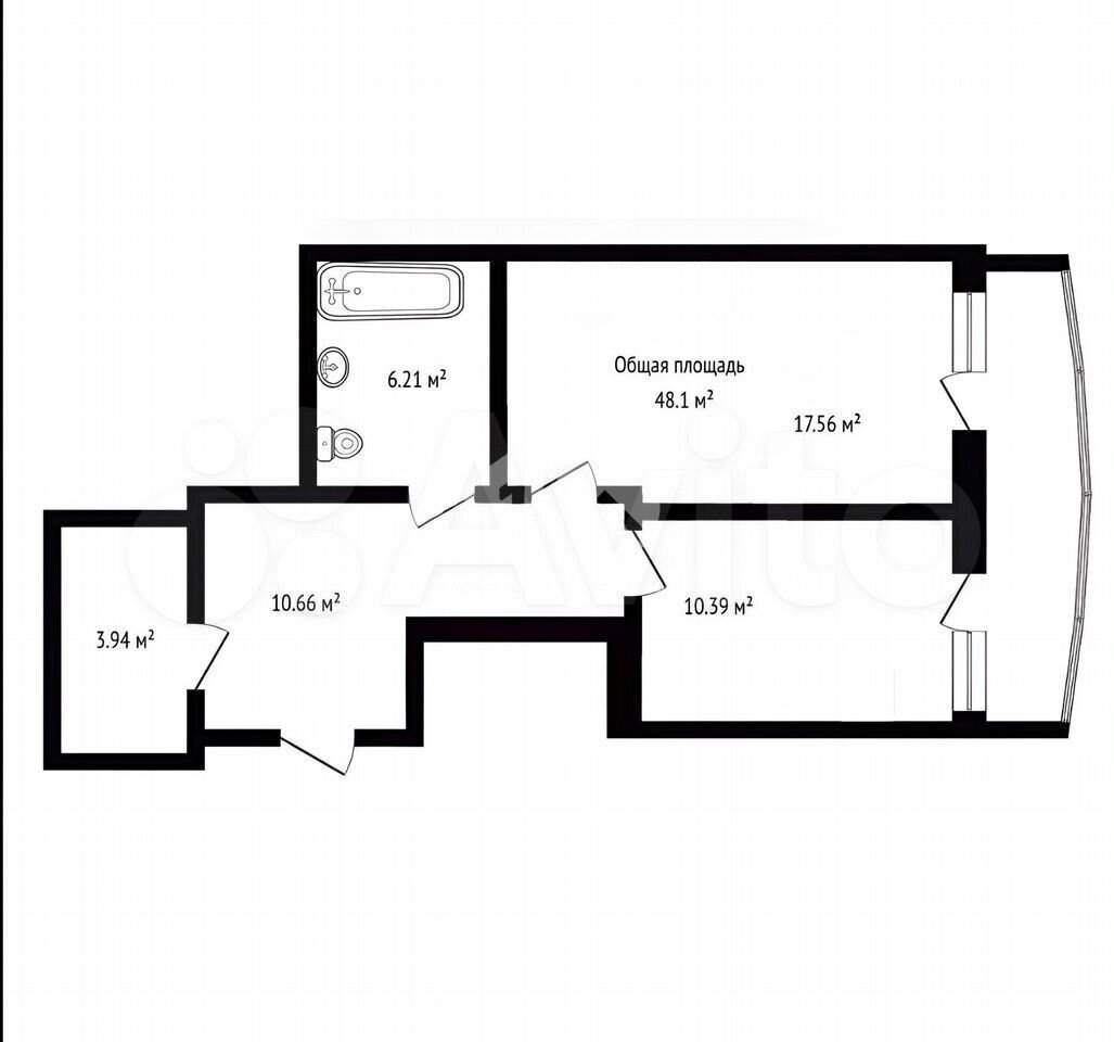 - Общая площадь 48.1 м2
