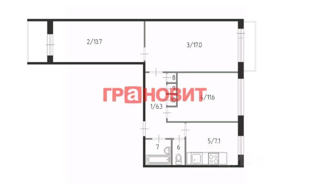 - Общая площадь: 63.3 м2