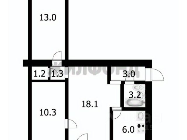 - Общая площадь: 56.1 м2