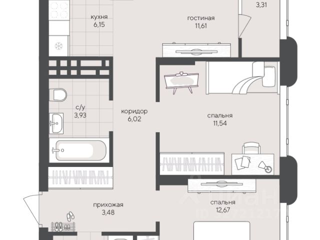 - Общая площадь: 63 м2