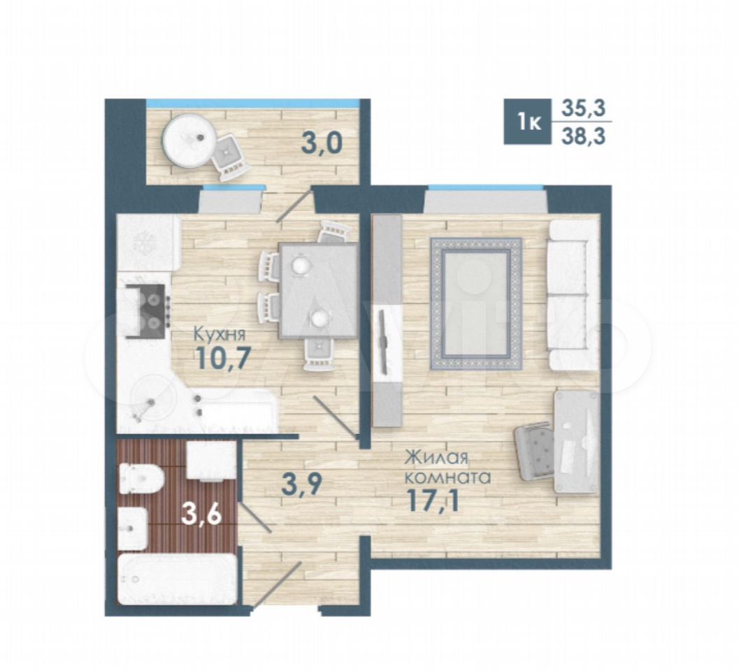 - Общая площадь: 35.3 м2