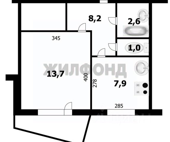 - Общая площадь: 33.7 м2