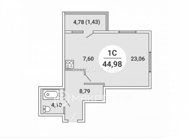 - Общая площадь: 45 м2