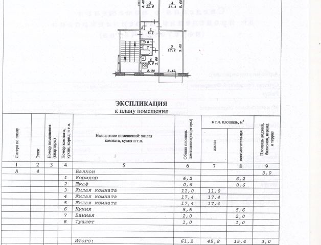 - Общая площадь: 61.2 м2