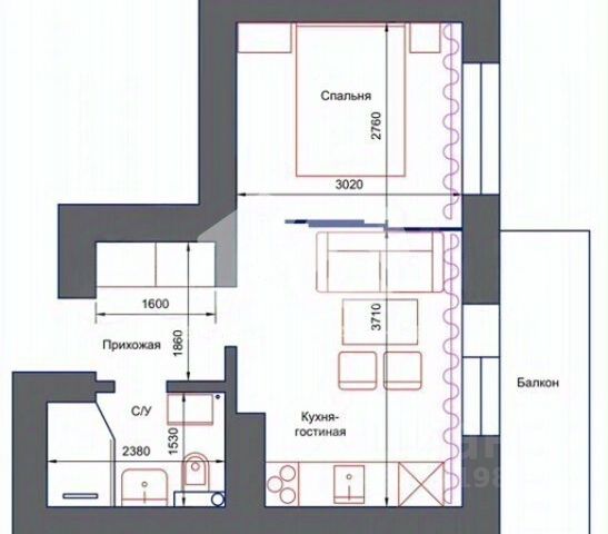 - Общая площадь: 26 м2
