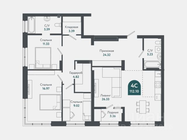- Общая площадь 112.2 м2