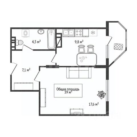 - Общая площадь 39 м2