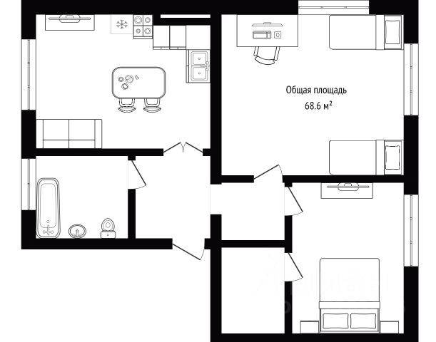- Общая площадь: 68.6 м2