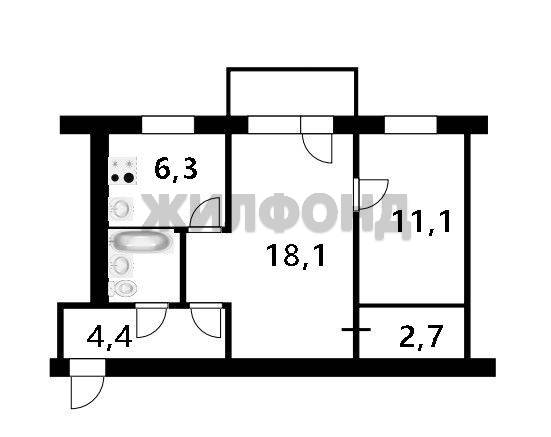 - Площадь кухни: 6.3 м2