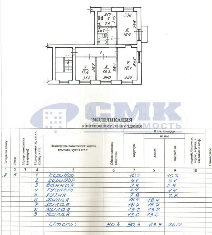 - Общая площадь: 90.3 м2