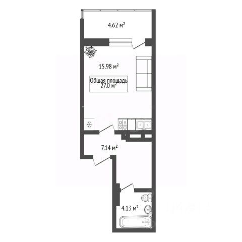 - Общая площадь: 27 м2