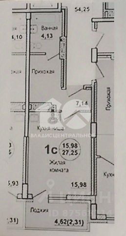 - Общая площадь: 27 м2