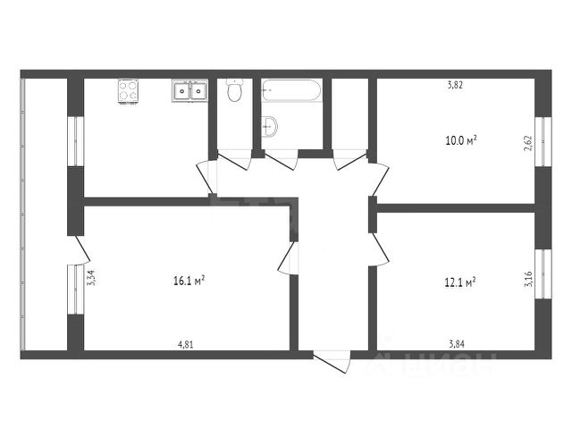 - Общая площадь 66 м2