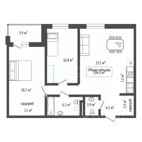 - Общая площадь 104 м2