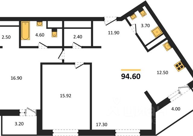 - Общая площадь 94.6 м2