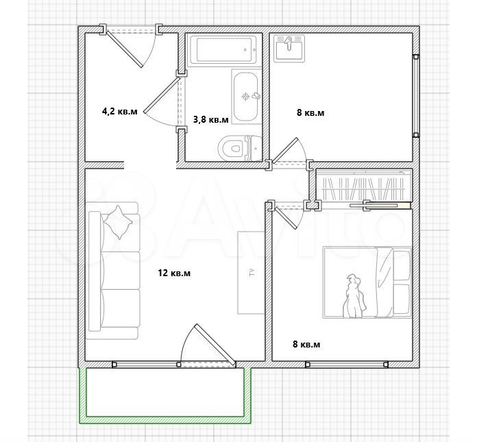 - Общая площадь: 36 м2