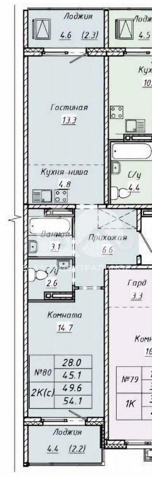 - Общая площадь: 45.1 м2