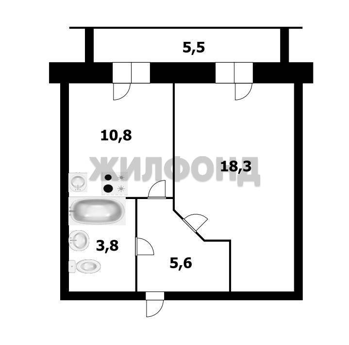 - Общая площадь: 38.5 м2
