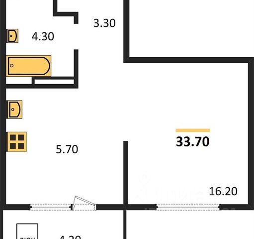- Общая площадь 33.7 м2