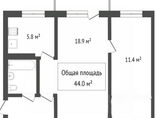 - Общая площадь: 44 м2