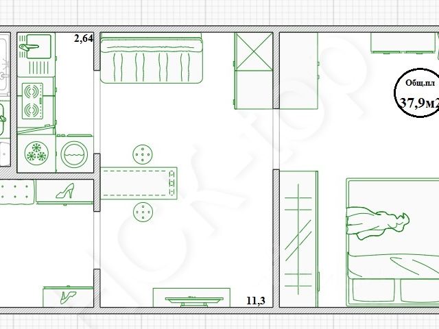 - Общая площадь: 37.9 м2