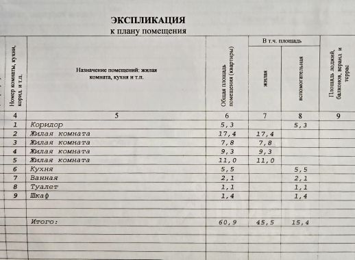 - Общая площадь: 60.9 м2