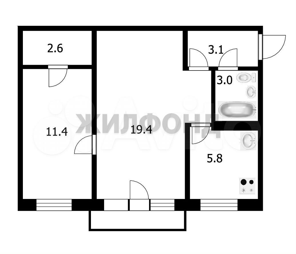 - Общая площадь: 45.3 м2