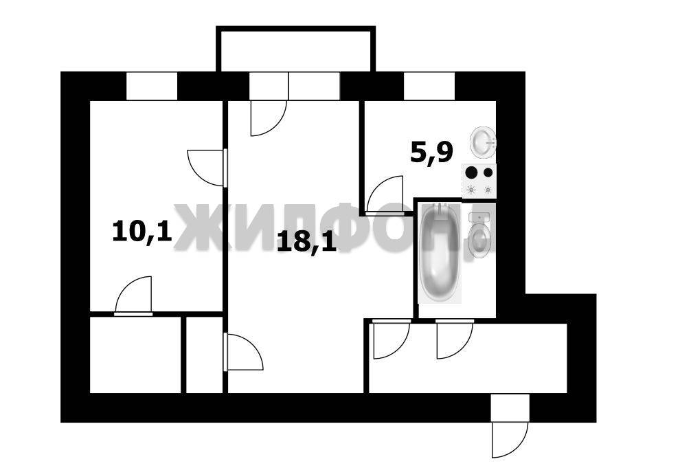 - Общая площадь 44.3 м2