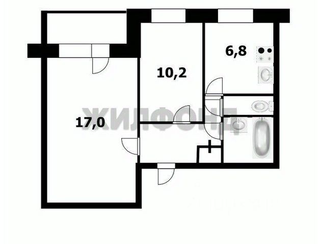 - Общая площадь: 42.9 м2