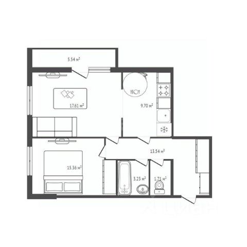 - Общая площадь 63.5 м2