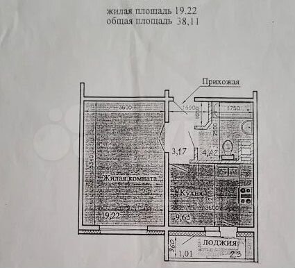 - Общая площадь: 38 м2
