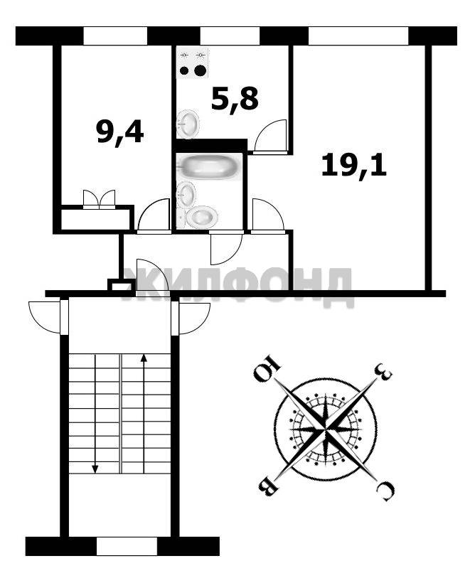 - Санузел: Совмещенный