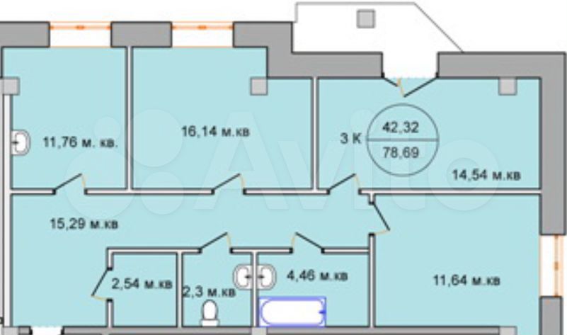- Общая площадь 78.7 м2