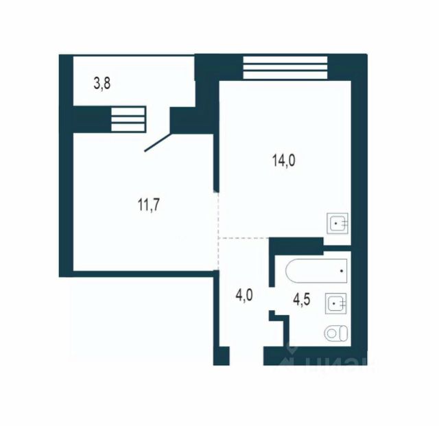 - Общая площадь: 38 м2