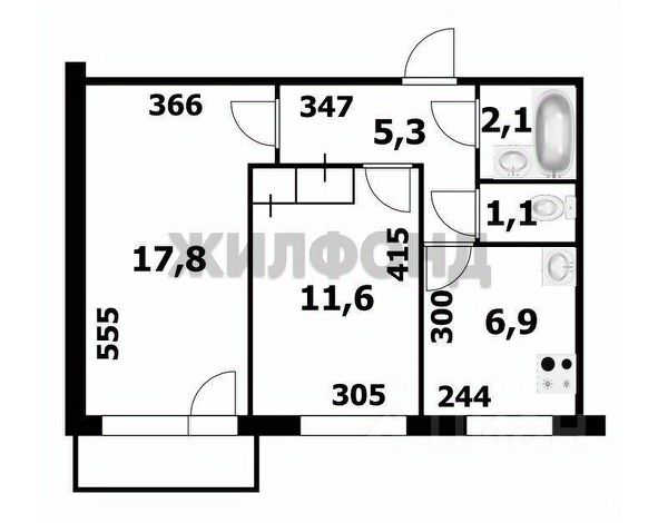 - Общая площадь 42.7 м2