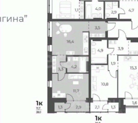 - Общая площадь 39.1 м2
