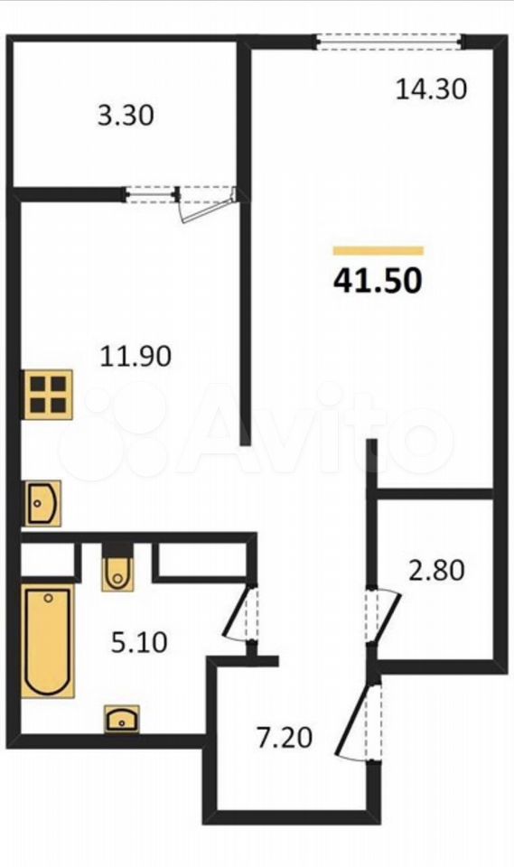 - Общая площадь: 41.5 м2
