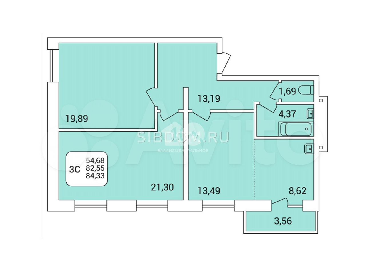 - Общая площадь: 82.5 м2