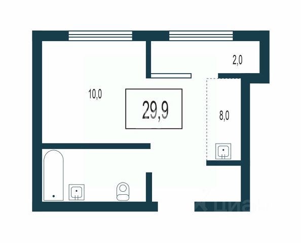 - Общая площадь 29.9 м2