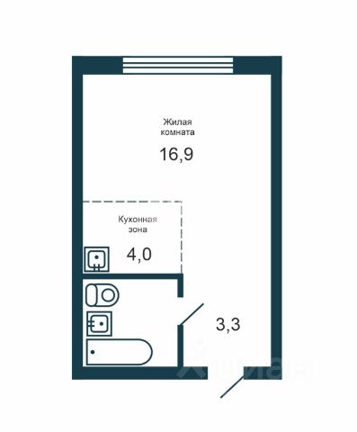 - Общая площадь 23.3 м2