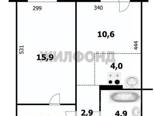 - Общая площадь: 42.6 м2