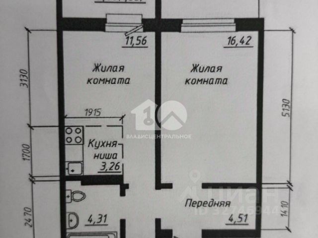- Общая площадь: 42 м2