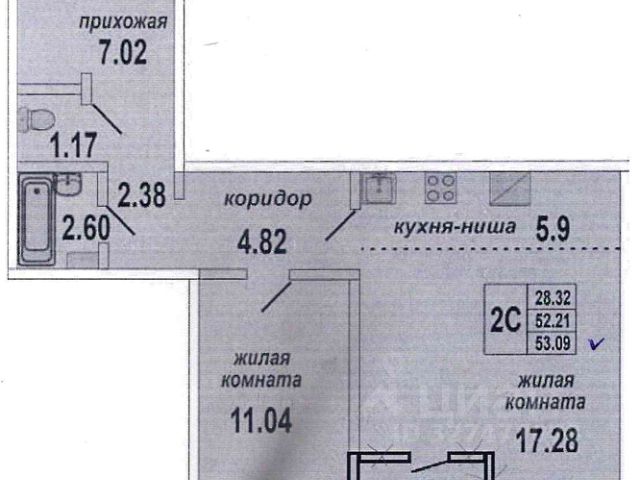 - Общая площадь 53 м2
