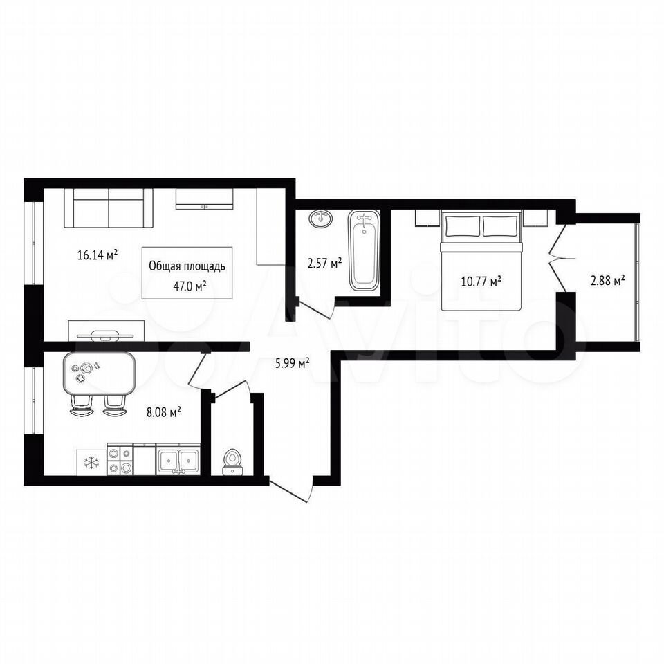 - Общая площадь: 47 м2
