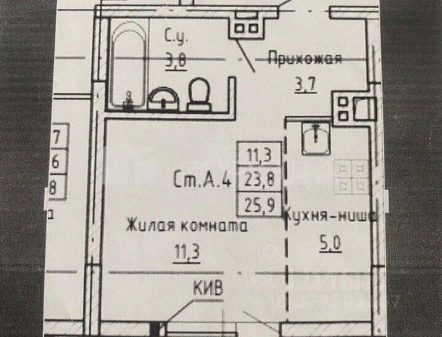 - Общая площадь 26 м2