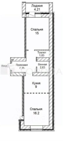- Общая площадь: 51.2 м2