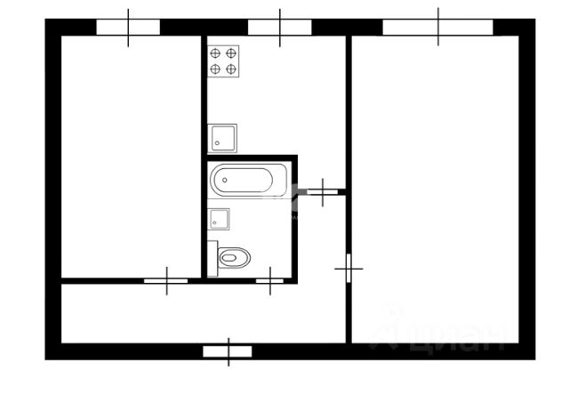 - Общая площадь: 42.7 м2