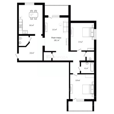 - Общая площадь 105.1 м2