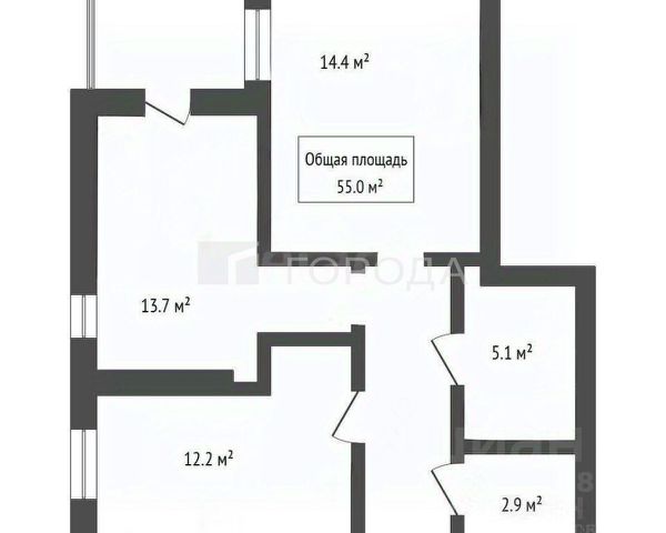 - Общая площадь 55 м2